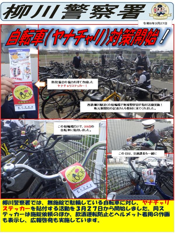 自転車対策(ヤナチャリ)開始!!