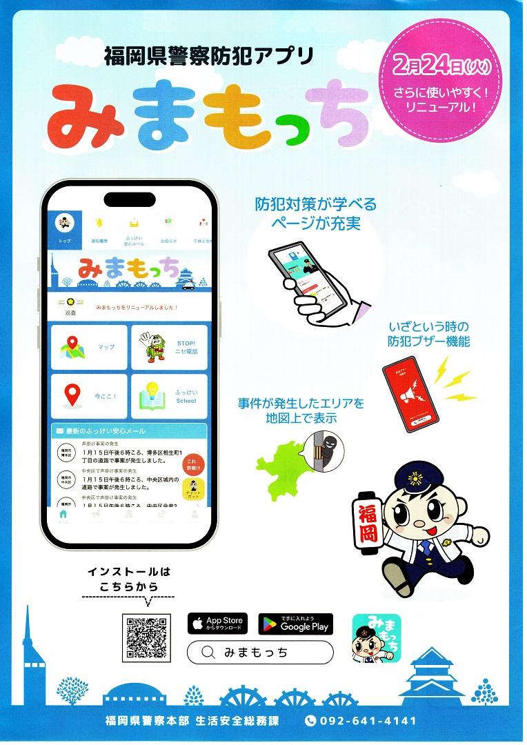 福岡県警察防犯アプリ『みまもっち』がリニューアル‼