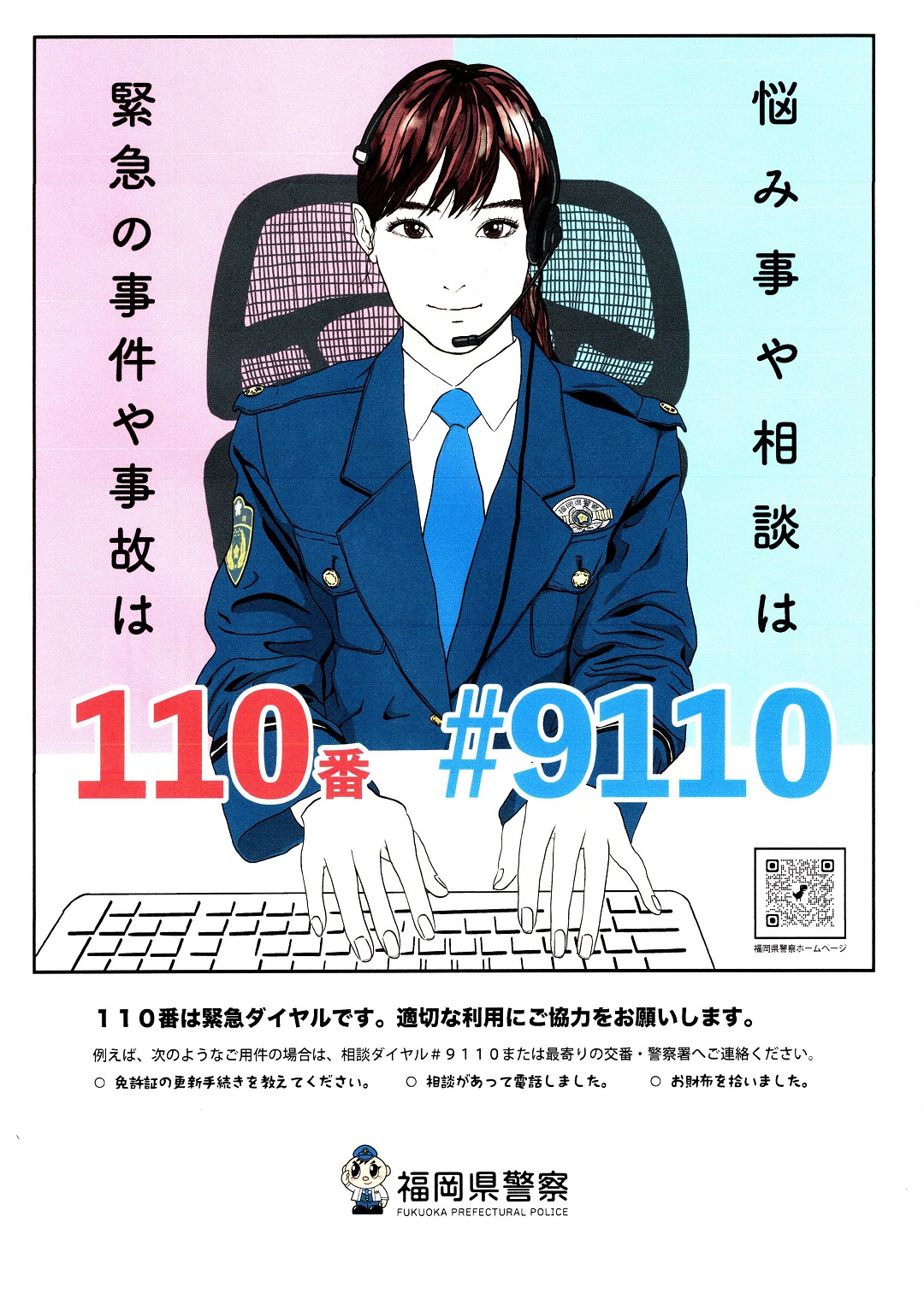 緊急の事件や事故は110番、悩みや相談は♯9110