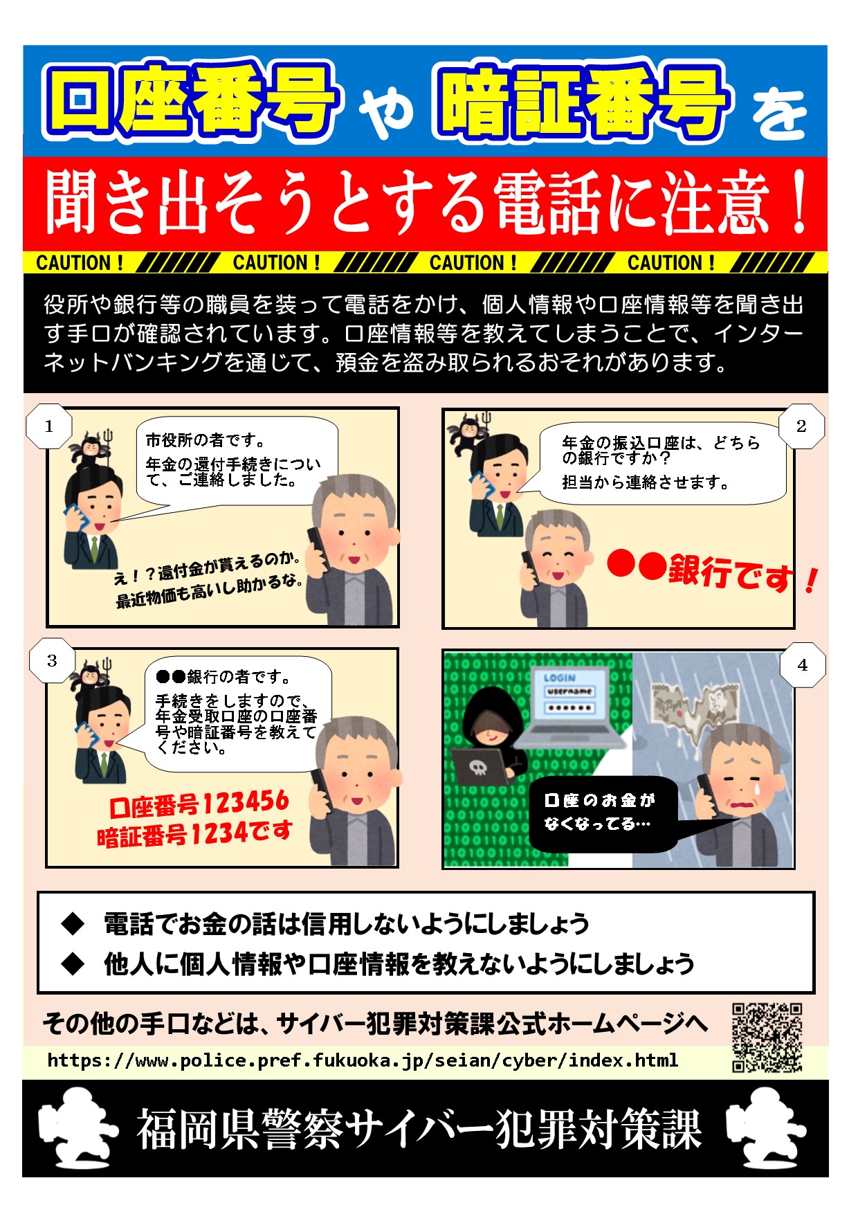 口座番号や暗証番号を聞き出そうとする電話に注意!