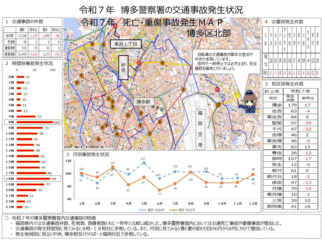 令和7年中に博多警察署管内で発生した交通事故の特徴