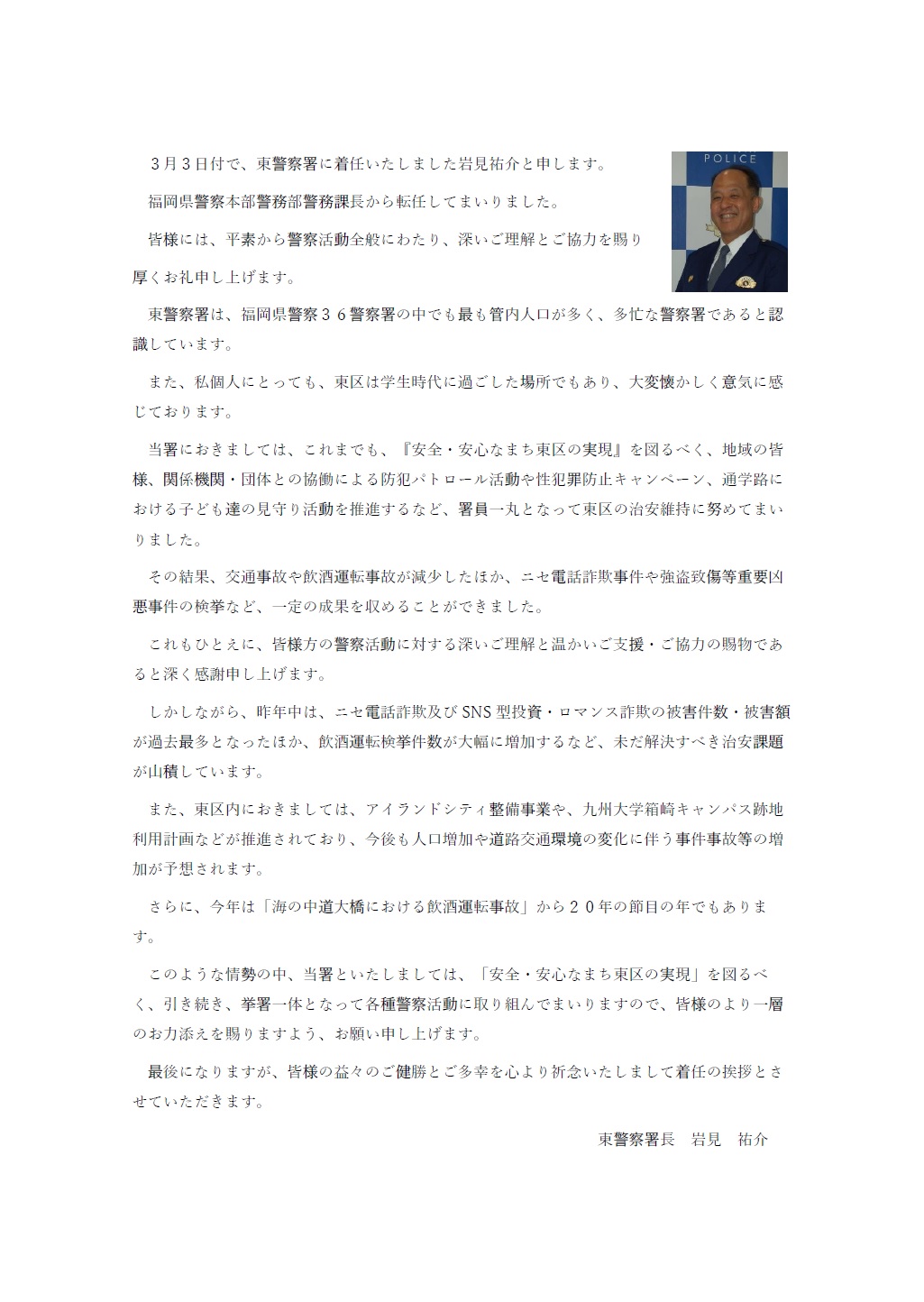 岩見署長着任ご挨拶