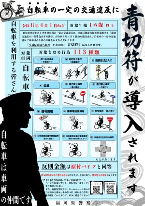 〇 自転車の一定の交通違反に青切符が導入されます!