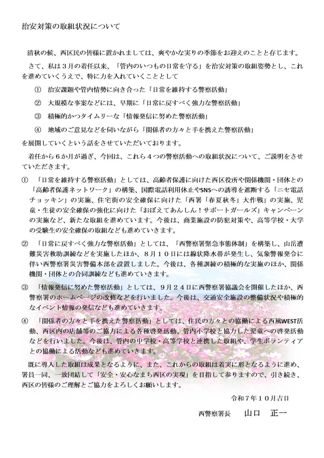 西警察署長から住民の皆様へ