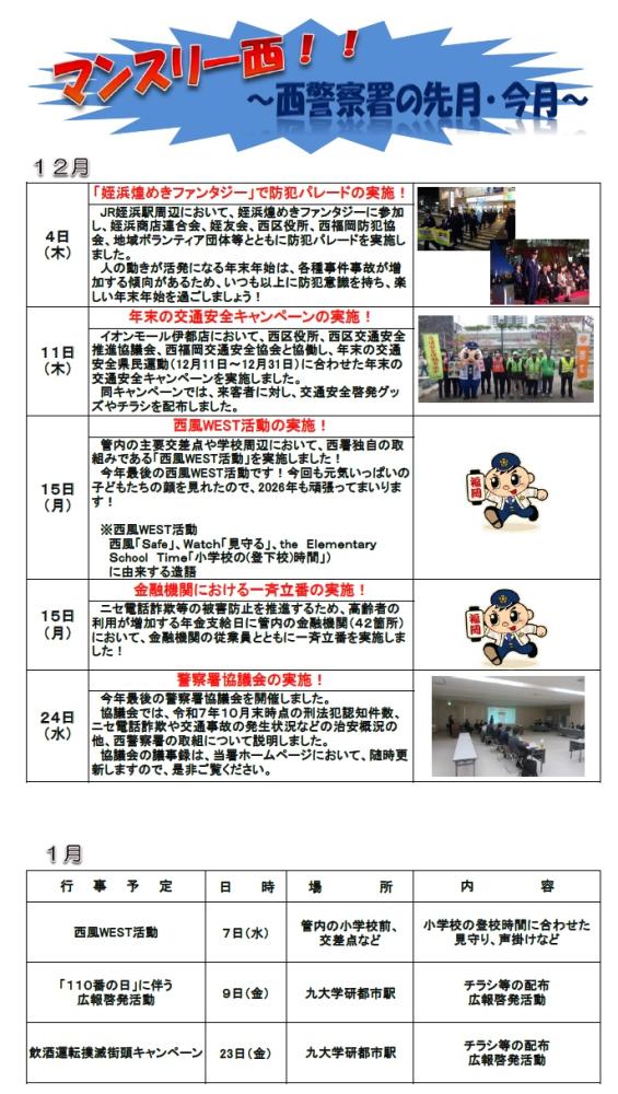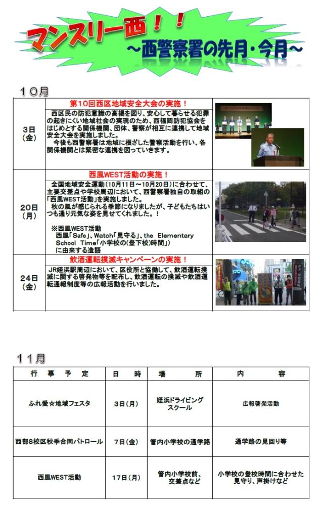 西警察署の今月の活動結果と来月の活動予定を掲載しています。