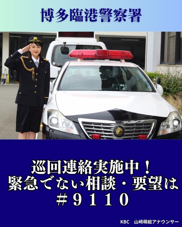 | お問合せ先 | 博多臨港警察署 生活安全刑事課 生活安全係 電話番号 092-282-0110(音声ガイダンス3番) |