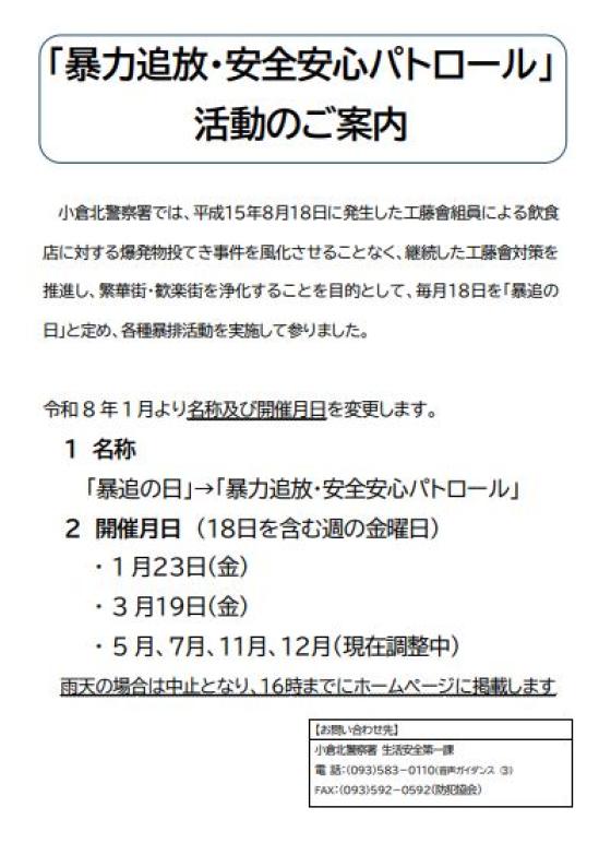 「暴力追放・安全安心パトロール」活動のご案内