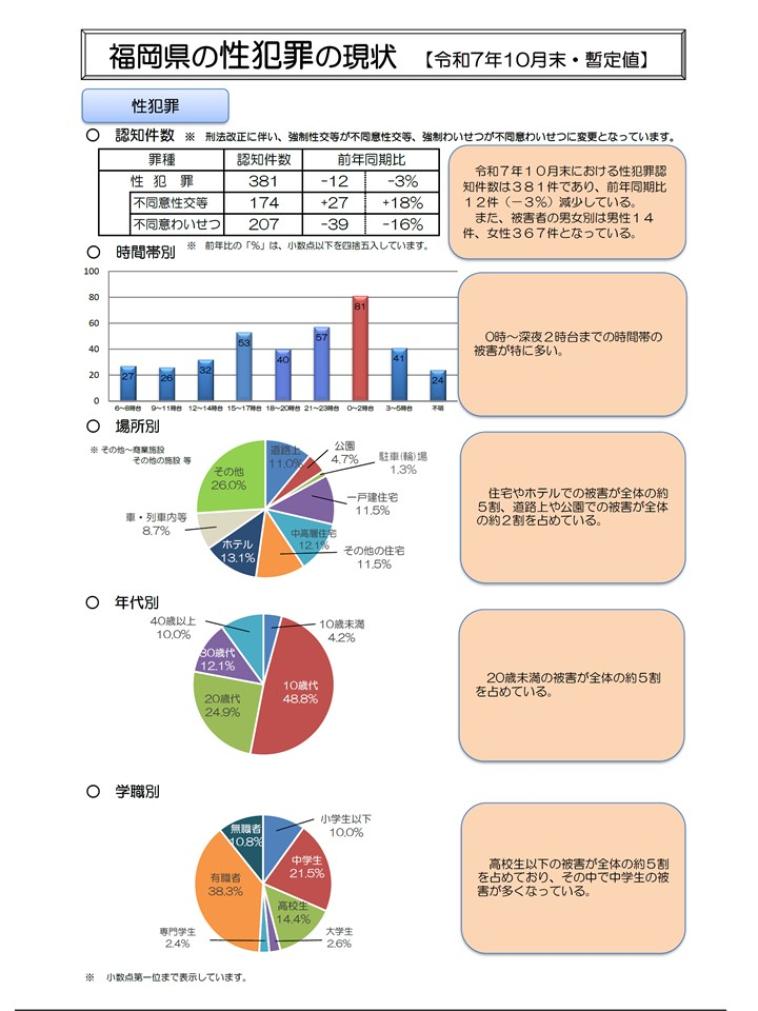 福岡県の性犯罪の現状【令和7年10月末・暫定値】