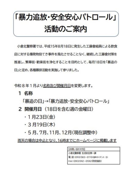 「暴力追放・安全安心パトロール」活動のご案内