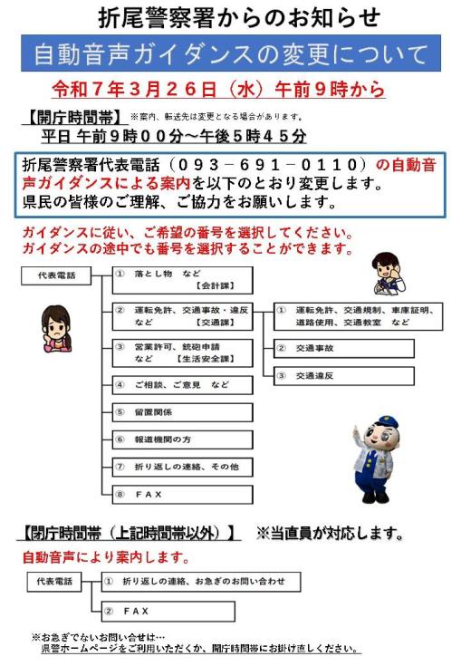 〇 折尾警察署代表電話への音声応答転送装置の導入について (311kbyte)