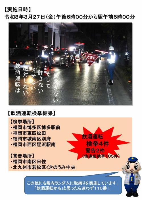 福岡県警察では、毎月、県下一斉飲酒運転撲滅特別取締りを行っています。