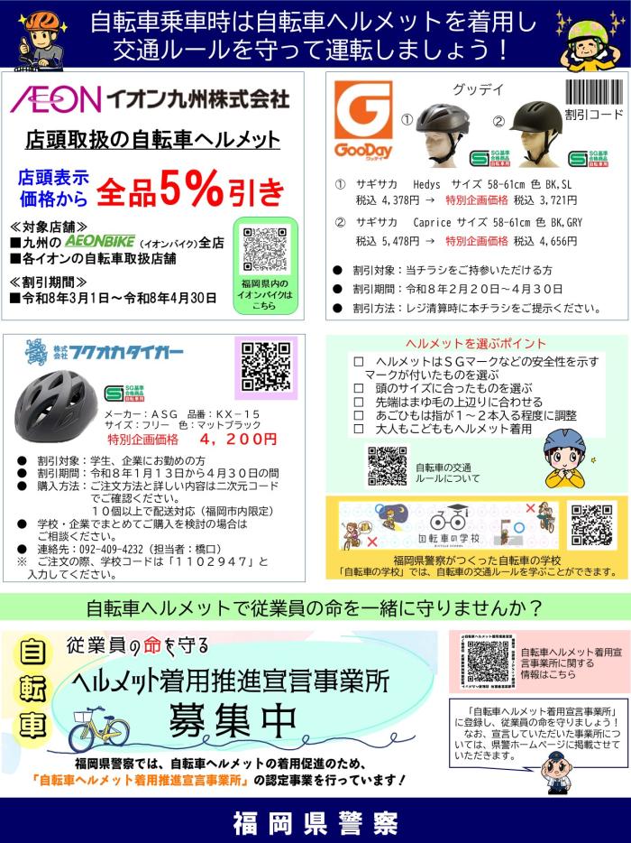 自転車ヘルメット着用促進啓発資料(ヘルメット割引情報)