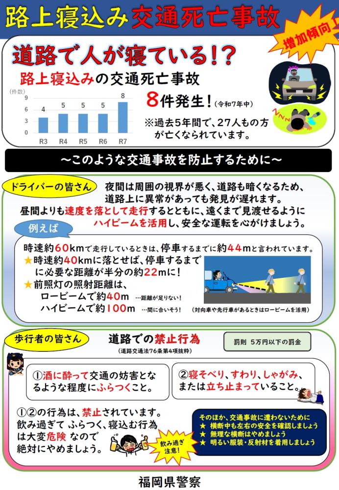 路上寝込み交通死亡事故発生