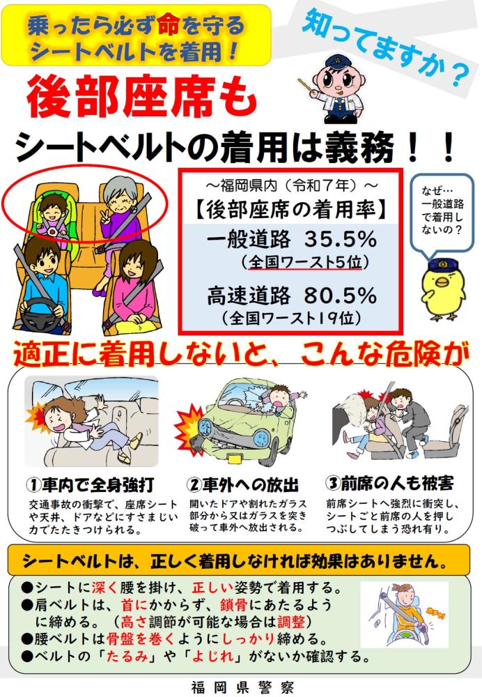 シートベルトの着用は全座席義務です