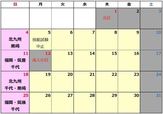 コチラ※1月5日(月)の技能試験等は実施しません。⇒詳しくは