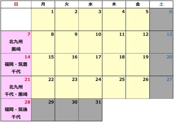 上記のカレンダーのとおりです。