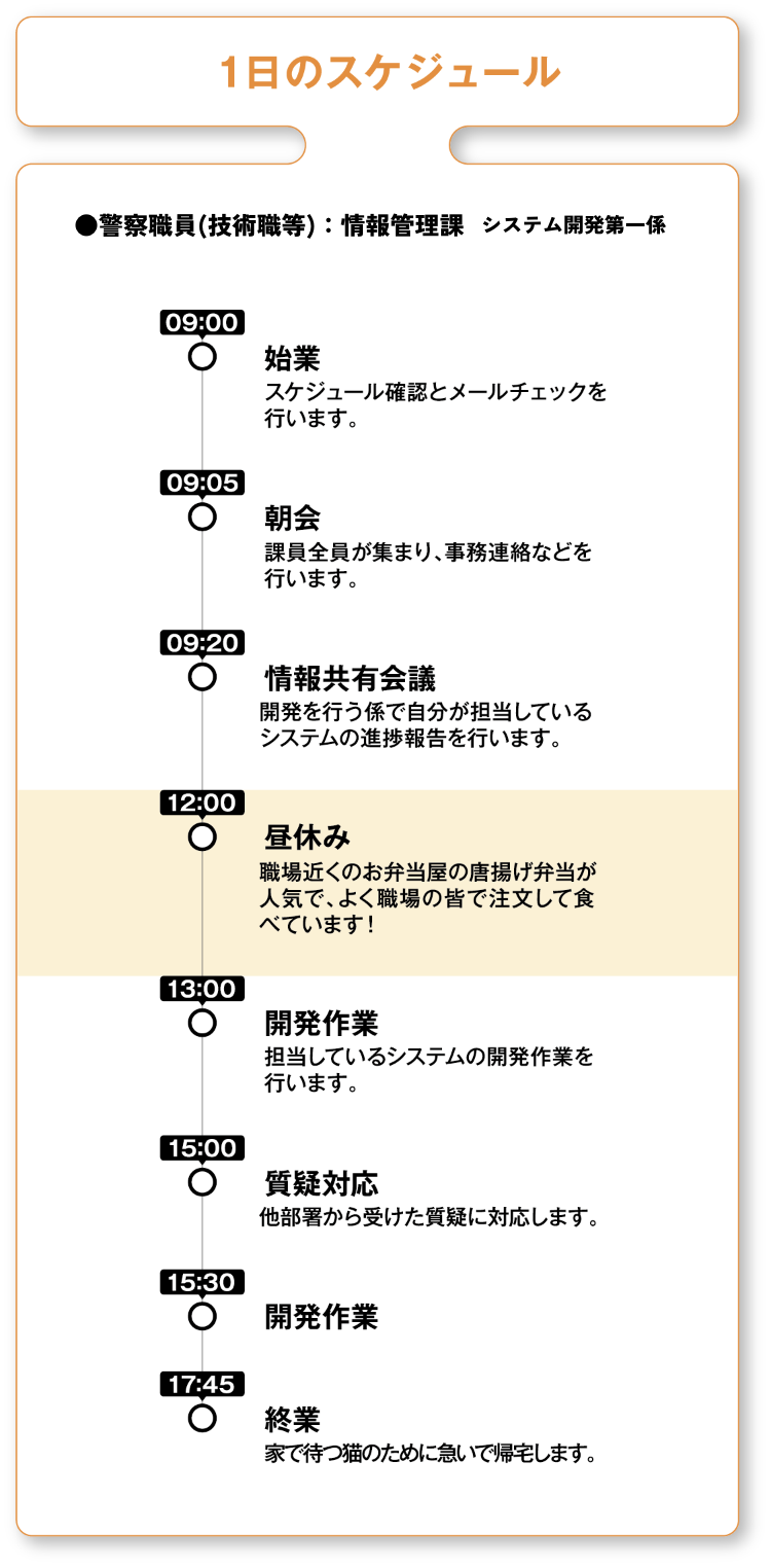 専門的な知識や技術をいかして、社会の変化によって警察が直面する様々な課題に対応し、警察活動の最適化かつ高度化を行う警察組織に欠かせない存在です。学校や民間企業等で培った一人一人のスキルが集結し、組織をアップデートさせるとともに福岡県の治安維持に貢献しています。