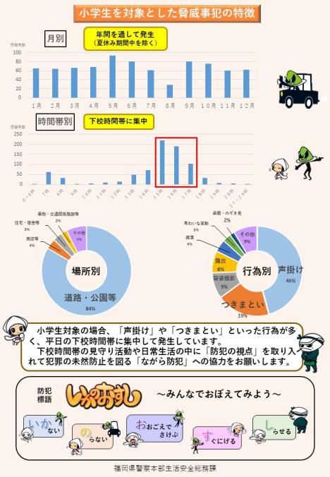 子供たちに対する見知らぬ人からの声掛けやつきまとわれたなどの被害を見聞きした場合は、警察に通報してください。