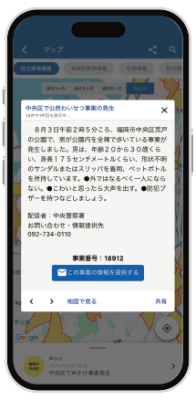 現在地の犯罪情報をプッシュ通知でお知らせ
