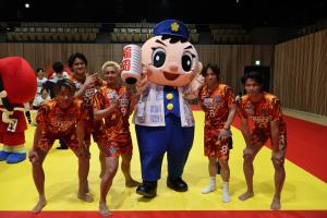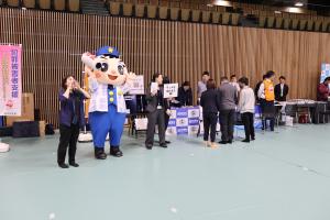 3月22日、福岡武道館で開催された福岡県トップスポーツチームコンソーシアム共同イベントにおいて、福岡県警察防犯アプリ「みまもっち」の紹介や交通安全の広報啓発活動を実施しました。