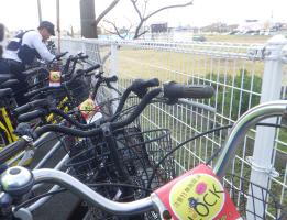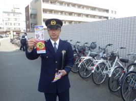 3月27日、市営柳川駅西口駐輪場において、柳川警察署自転車対策(通称:ヤナチャリ)を実施し、駅駐輪場の自転車へ施錠を促すステッカーを貼付する活動を行いました。