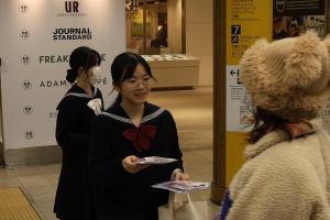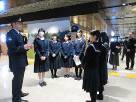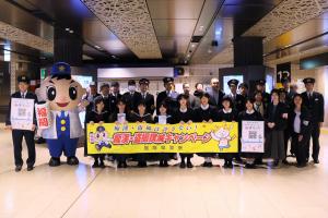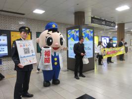 3月6日、福岡市地下鉄天神駅において、受験期における痴漢事犯対策キャンペーンを実施し、痴漢被害防止を呼び掛けました。